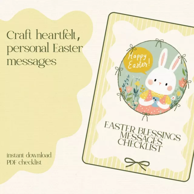 Don’t wait to share joy this Easter! Download the Easter Blessings Messages Checklist now and start creating heartfelt, personal, and uplifting easter blessings messages that will delight everyone on your list. Make this Easter truly special with messages that come from the heart.