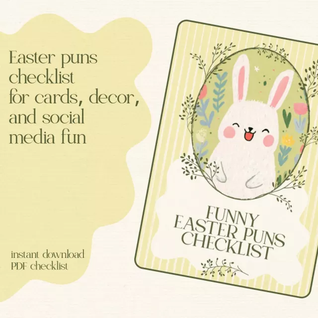 Get your hands on this Funny Easter Puns Checklist and elevate your Easter celebrations with some laughter! Download it now and keep it handy for cards, decorations, or even just for fun. Don’t let the season pass without spreading some joy—this pun-filled list will make sure you have everything you need for a happy, punny Easter!