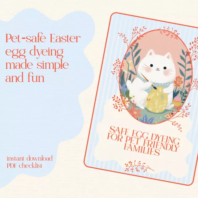 This digital download is designed for pet lovers who want to include their furry friends in the Easter celebrations, without compromising their safety. Unlike other general dyeing guides, Safe Egg Dyeing for Pet Friendly Families specifically focuses on creating a safe environment for your pets while you enjoy the seasonal fun. We cover everything from choosing safe dyes to supervising both pets and children during the dyeing process, so your Easter is as fun and safe as possible.