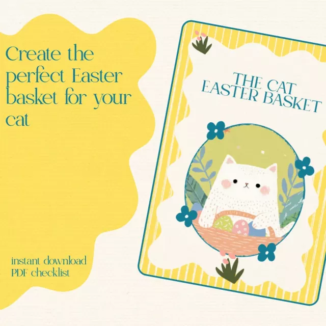 Get ready to spoil your cat this Easter with the Cat Easter Basket Checklist – the ultimate guide on how to make a cat Easter basket they’ll love! Whether you’re a seasoned cat parent or a first-time pet owner, this fun and easy-to-follow checklist ensures your furry friend gets the Easter basket of their dreams. Filled with expert tips, DIY ideas, and plenty of inspiration, this digital download is your go-to resource for creating a safe, festive, and exciting Easter experience for your cat.